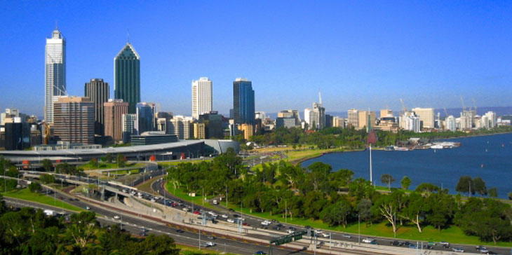 「世界で最も美しい街」とも言われ、街の中心をスワン川がながれ、近代的な建物と自然が共存した街です。