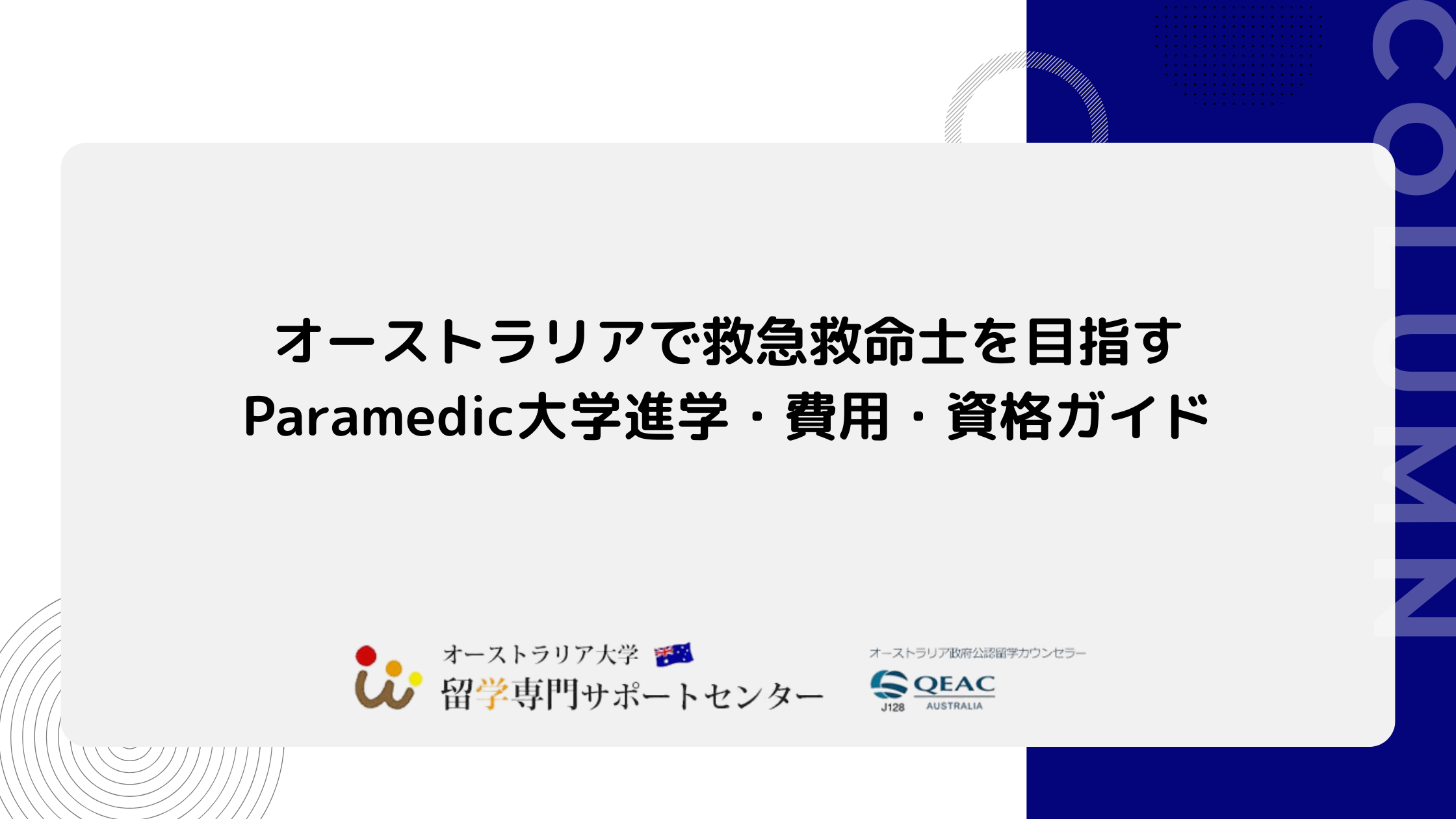 本記事では、オーストラリアでParamedicとして働くための大学進学ルート・入学要件・学費・認定制度・おすすめ大学を、留学生向けに分かりやすく解説します。
