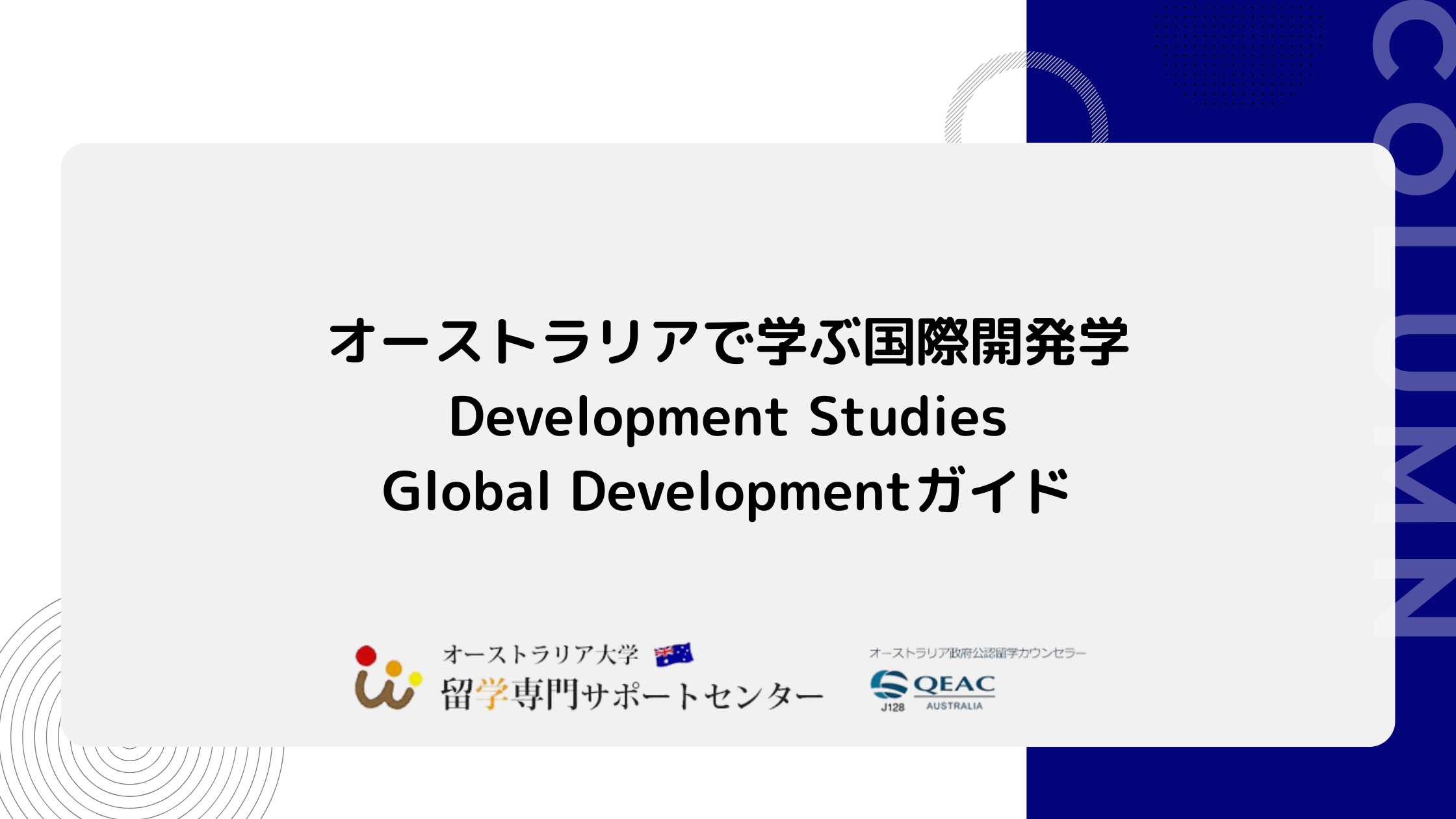国際関係学(International Relations)や平和学(Peace and Conflict Studies)と重なる部分も多く、「国際政治×開発」「平和構築×開発」など、複合的な専攻も選びやすいのがオーストラリアの特徴です。