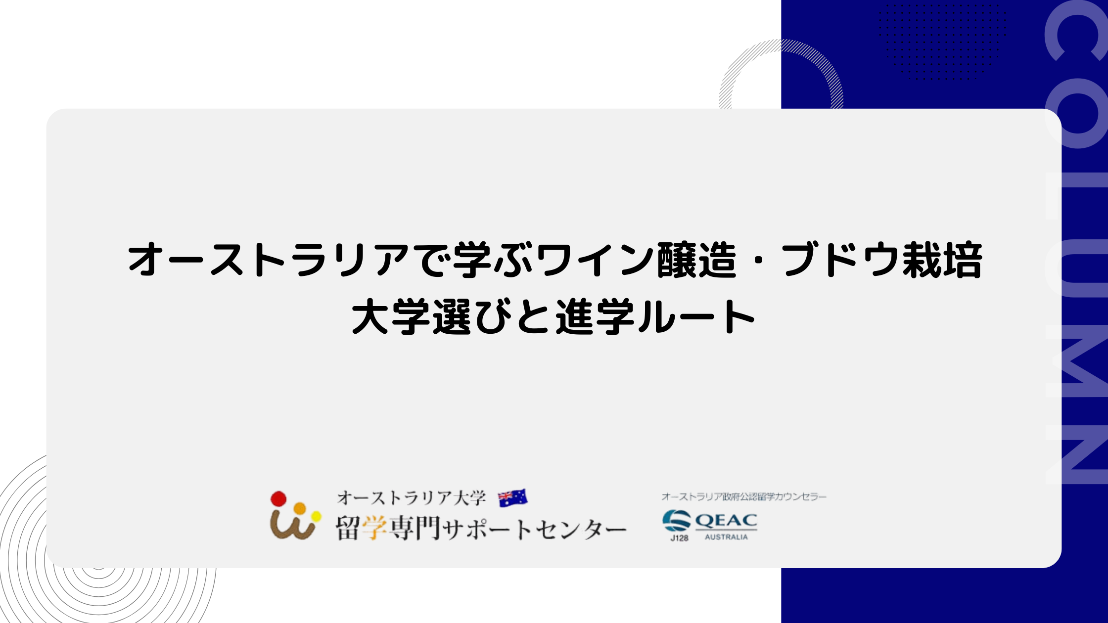 アジア太平洋のワイン大国・オーストラリア。多様な気候帯と成熟した研究エコシステム(大学・研究所・ワイナリー)が結びつき、栽培(Viticulture)×醸造(Oenology)×品質管理×ツーリズムを横断して学べるのが強みです。本稿では、オーストラリア大学留学専門サポートセンターの視点から、カリキュラムの実像・大学選びの軸・代表的進学動線・準備ステップをわかりやすく整理します。